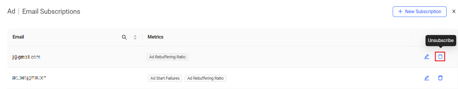 Click Unsubscribe to remove the Ads AI alert email subscription for the selected user.