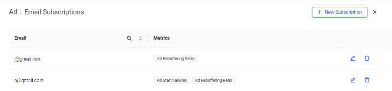To edit Ads AI alert email subscriptions for a user, click Edit icon.