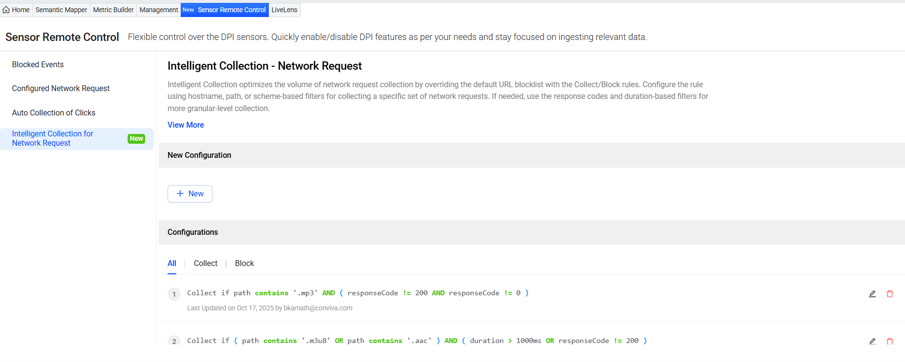 Click Save. Conviva DPI sensor starts collecting the conviva_network_request events that match the rules.