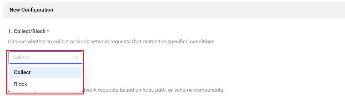 Select the Collect or Block option from the drop-down to collect/block network requests that match the rules.