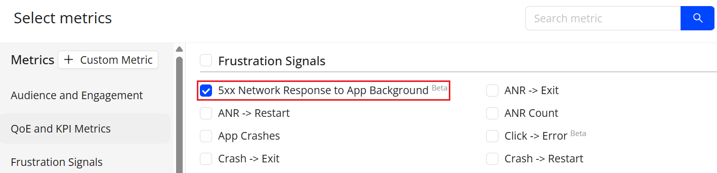 Metrics: Adds 5xx Network Request Failure to App Background as a Frustration Metric (Beta)
