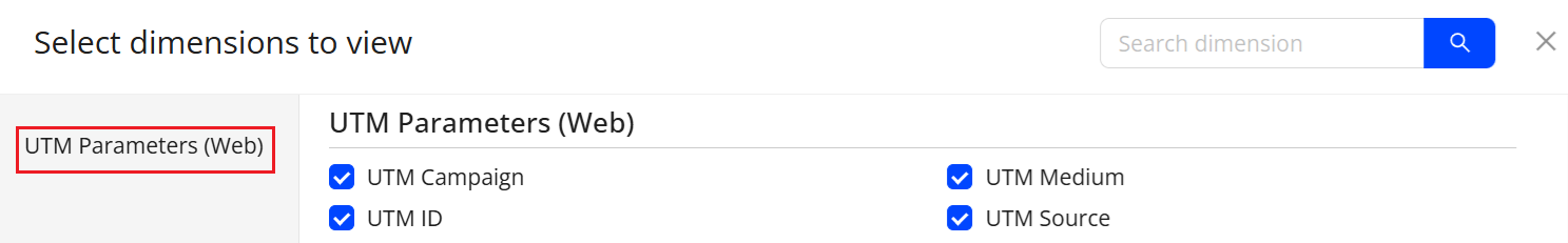 Introduces the Urchin Tracking Module (UTM) parameters in Trends, enabling dimensional drill-down for tracking digital marketing performance. The UTM parameters as dimensions in Trends, enable deeper analysis of the source, medium, and context of marketing-related traffic along with DPI metrics, supporting unified data-driven decision-making.