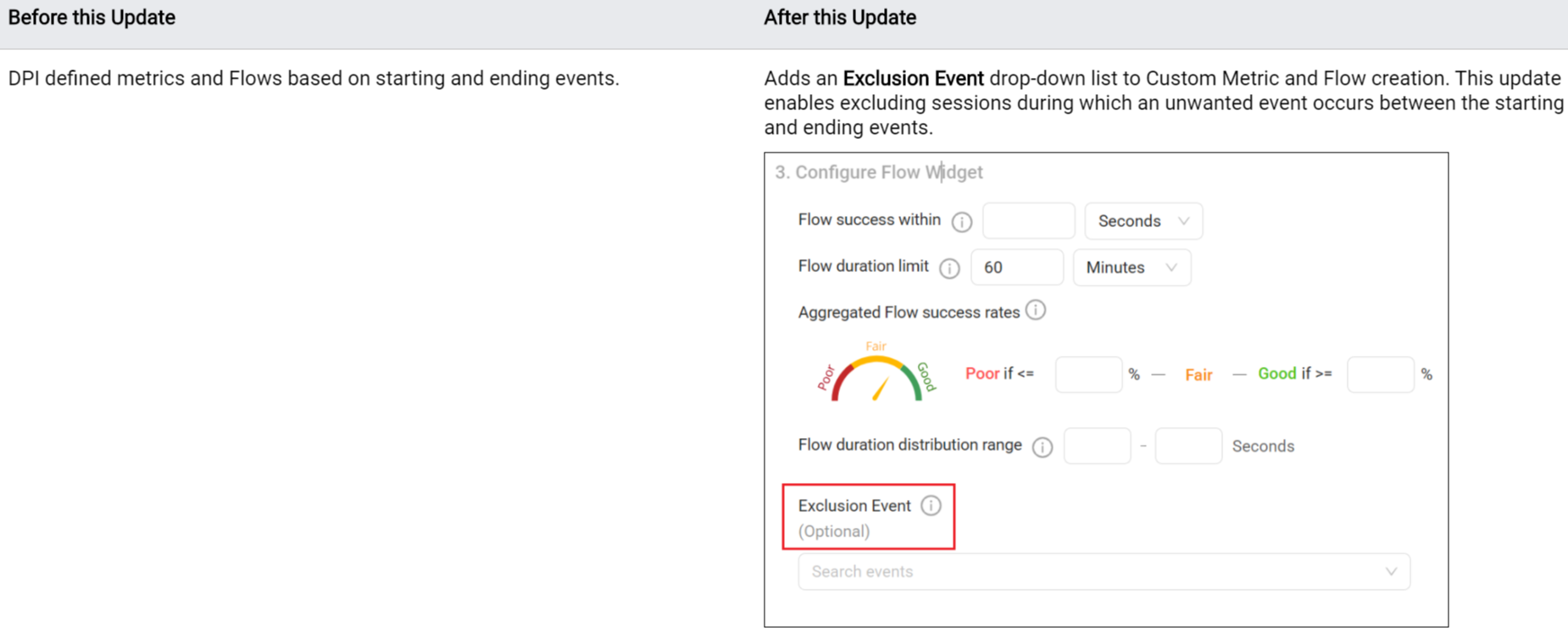 Flow and Metric Creation: Enables Transition Event Exclusion