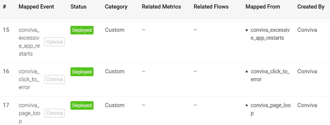 | conviva_click_to_error | JS, Android, iOS | JS 1.1.2 and later, Android 1.2.0 and later, iOS 1.0.2 and later |