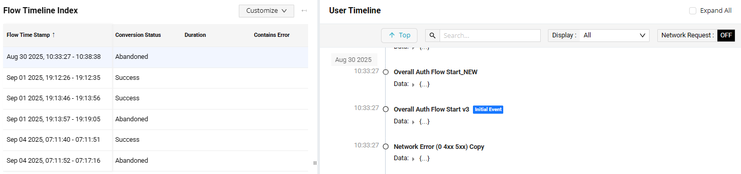 Use the new error-related Flow metrics for deeper drill-down error analysis. For example, compare Errors in Abandoned Flows with Errors in Completed Flows to identify which errors are critical and prevent flow conversion.
