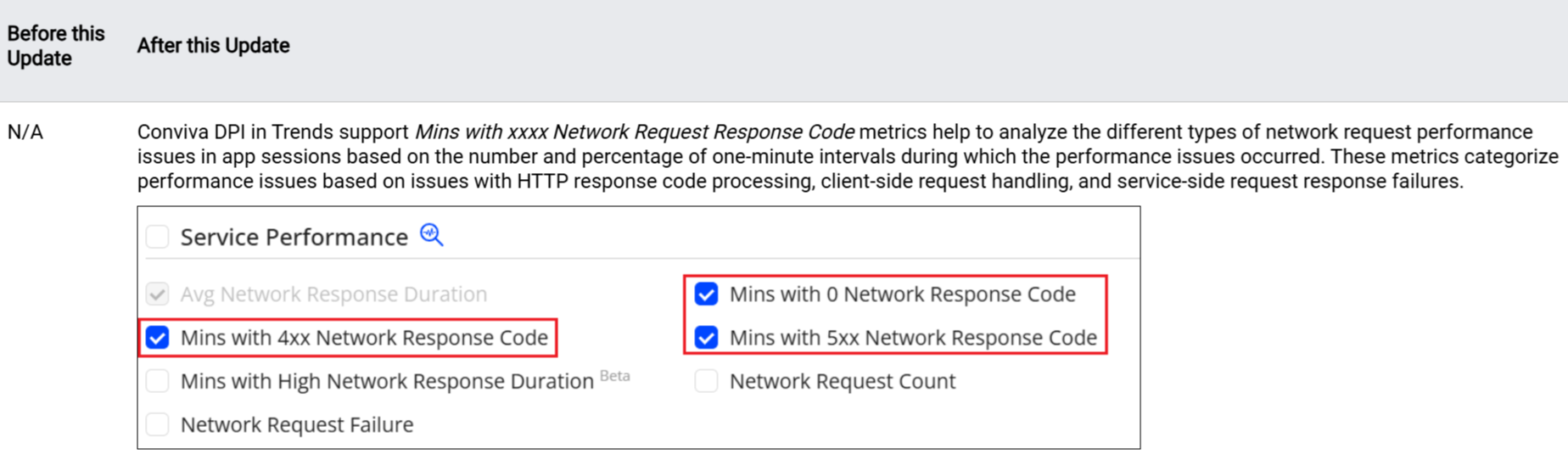 Introduces the Mins with xxx Network Request Response Code metrics,