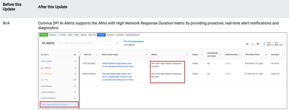 AI Alerts: Supports AI Alerts for Mins With High Network Response Duration