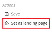 To change the default landing page, in the Toggle icon, select Set as landing page. The Home icon appears in the page tab of your default page.