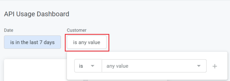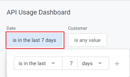 You can use Filters to customize the view of API calls usage data based on the Date and Customer fields, to view the usage numbers of API calls per client for the selected duration.