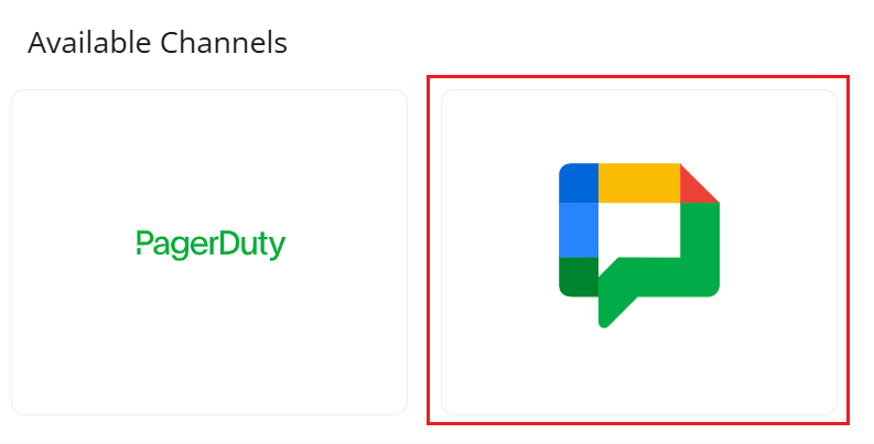 Navigate to Settings > More Channels, Click GChat Notification Icon to see the New GoogleChat Integration screen.