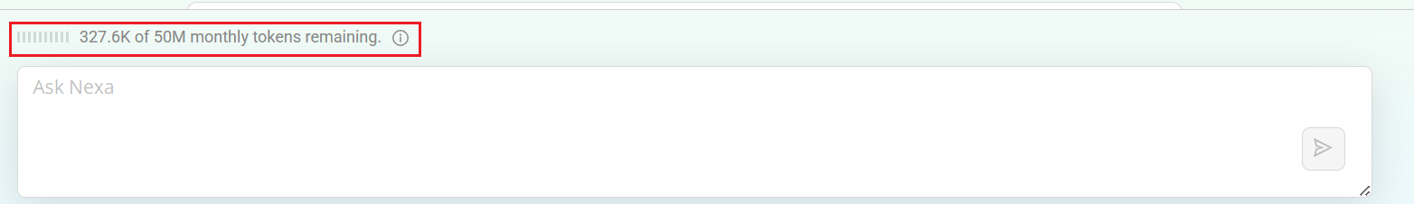 Token usage in chat provides insight into the number of tokens consumed by prompts. Nexa displays token usage by default.