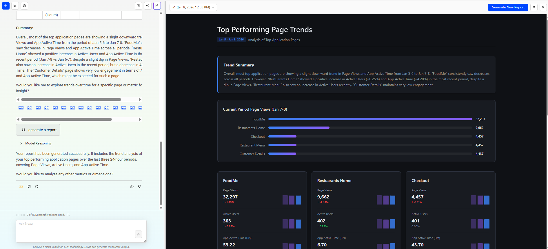 Note: For the Alpha release, Nexa supports queries and prompts related to Trends and Out-of-the-Box (OOB) Metrics.