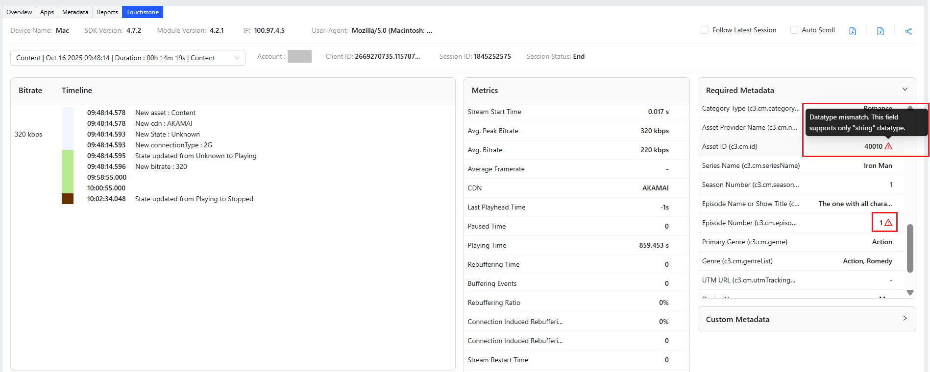 We are excited to announce the launch of Touchstone, designed to streamline the self-validation process for video sensor integration. Now integrated with Pulse, Touchstone enables in-depth monitoring of session timeline data, accessible within the app and across Pulse’s Overview, Trends, and Viewers dashboards. This new version also resolves previous inconsistencies in metric values between Pulse and the standalone Touchstone 1.0, ensuring more accurate data tracking.