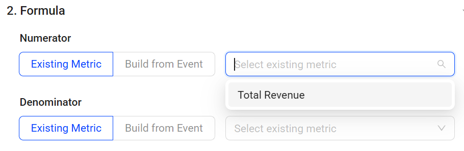 Select the events based on the Metric Type selection and configure metric details based on the selected metric type.