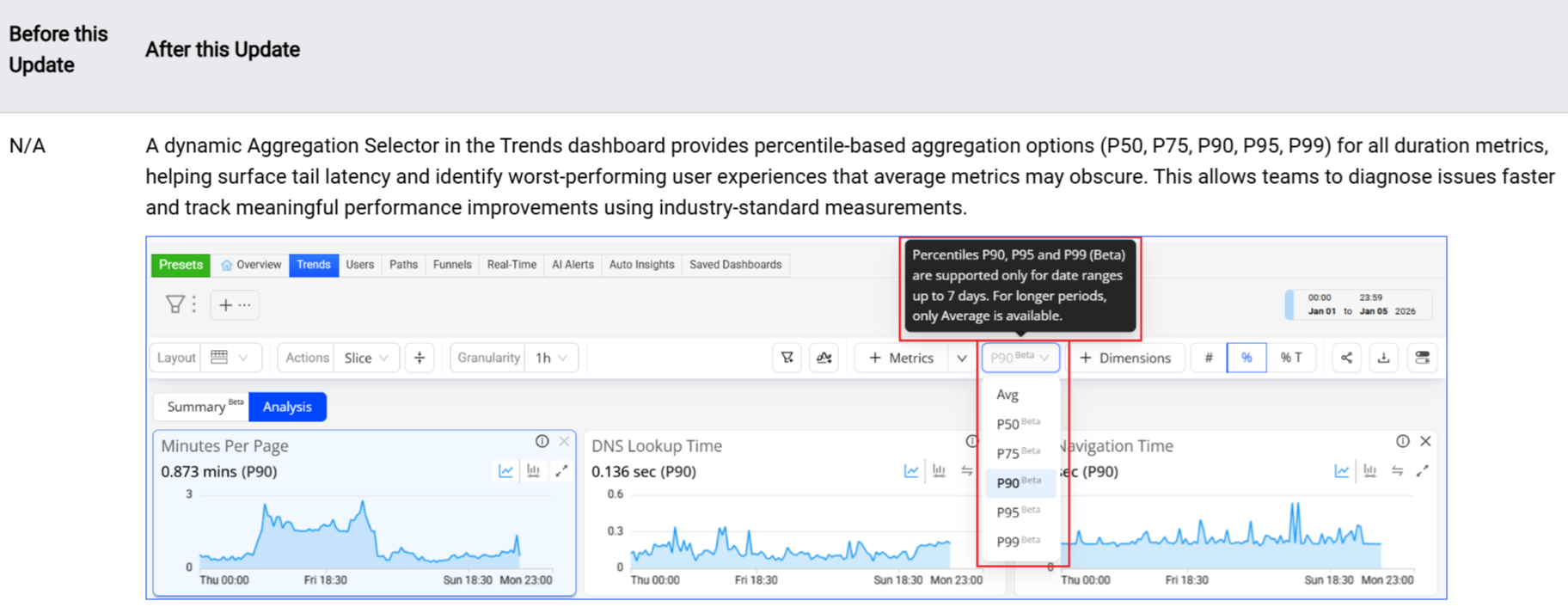 Trends: Percentile Aggregation for Duration Metrics (Beta) -- (Jan 2026)